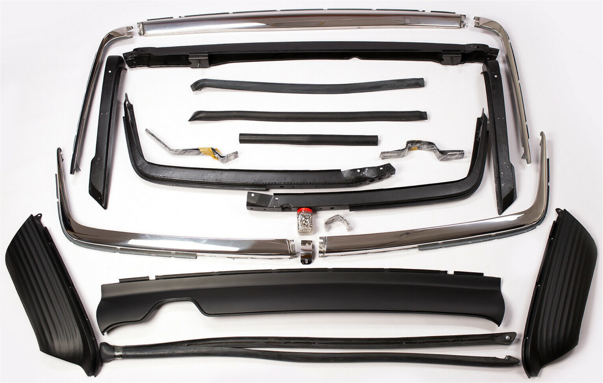 High-quality stainless steel bumper set for Mercedes-Benz W107 (SL/SLC). Perfect fit, mirror polished, rust-free, ready to ship worldwide.